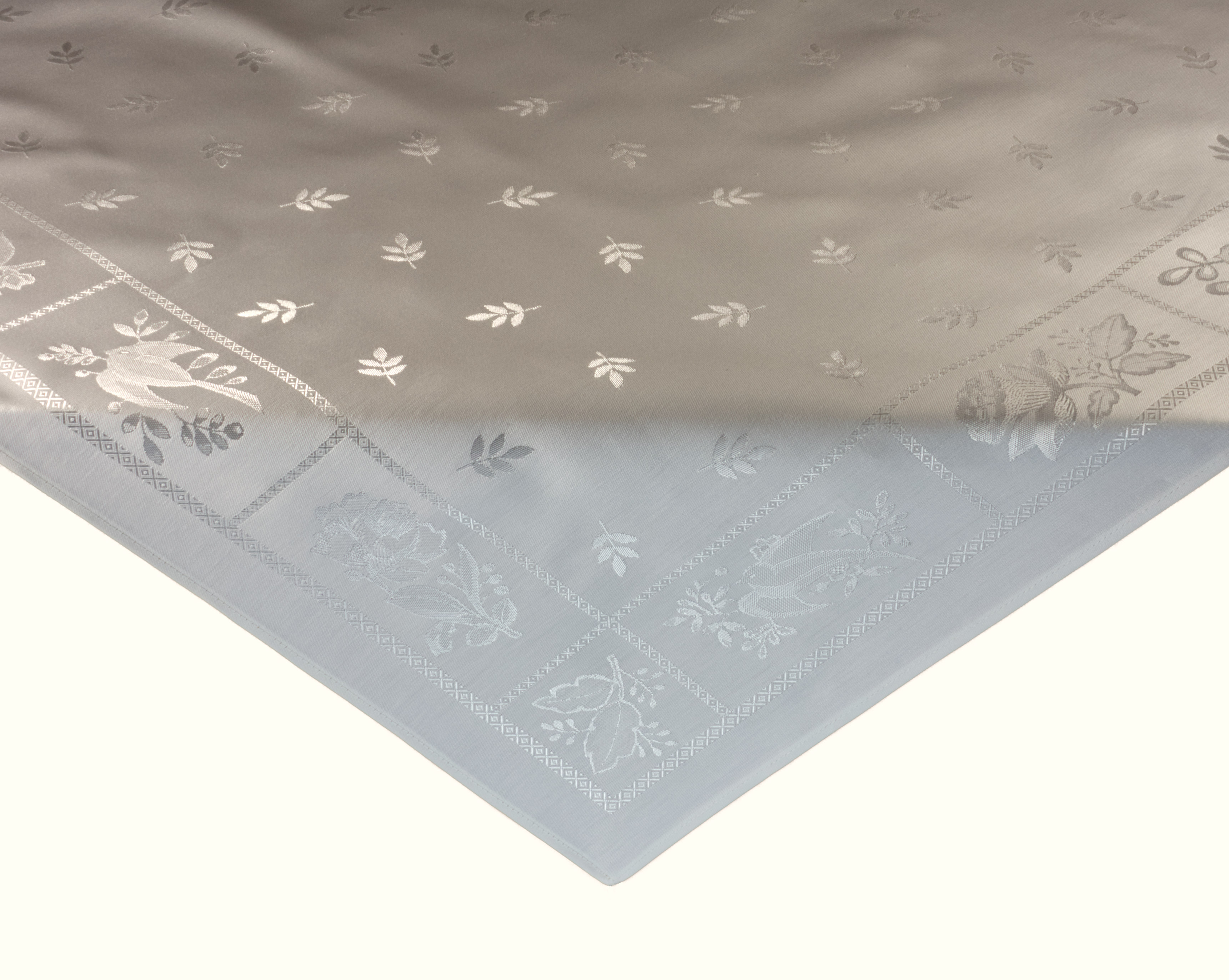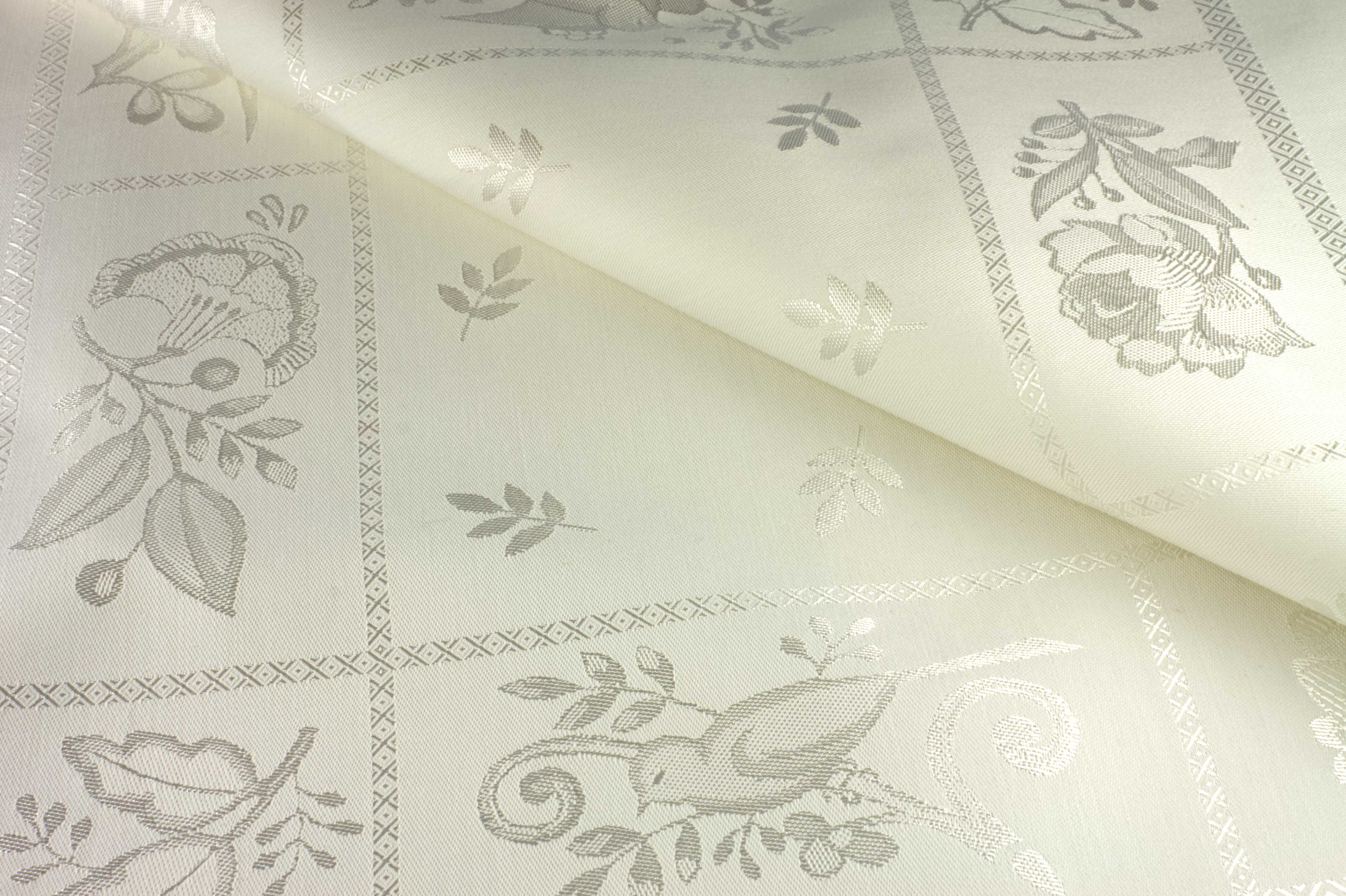 Damastmitteldecke mit eingewebter Blumenbordüre